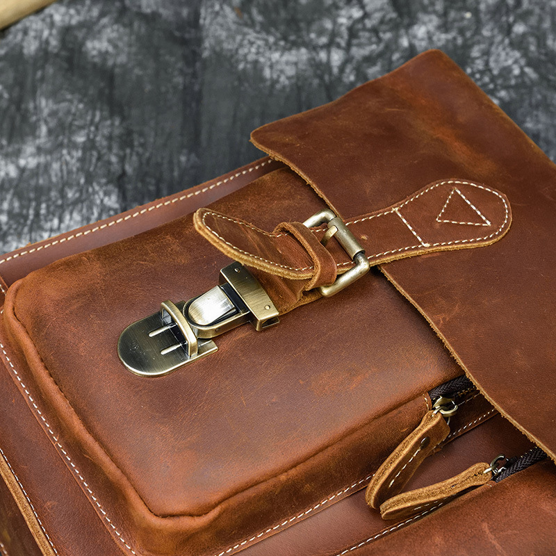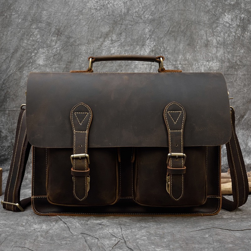 Men's Retro Crazy Horse Leather Messenger Briefcase